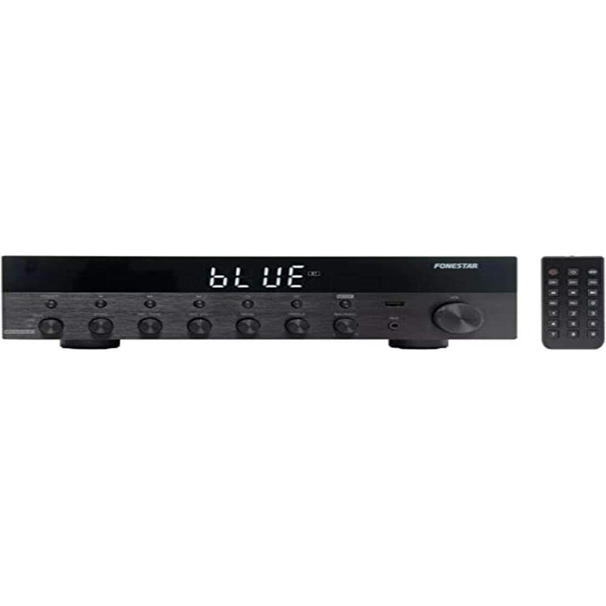 O amplificador Fonestar AS6060 é um equipamento estéreo versátil e funcional que combina potência e conectividade moderna num design compacto e elegante de cor preta. Este amplificador oferece uma potência de saída de aproximadamente 120W, adequada para amplificar sinais de áudio em diferentes ambientes, desde o lar até eventos pequenos. Entre as suas características técnicas destacam-se a conectividade Bluetooth, que permite reproduzir música sem fios a partir de dispositivos móveis, facilitando uma experiência de escuta prática e atual. O amplificador inclui ainda um ecrã incorporado que facilita a visualização da informação básica e o controlo das funções, melhorando a usabilidade e o acesso às várias opções de sintonia e reprodução. Outra função relevante é a incorporação de um rádio FM integrado, que amplia as possibilidades de uso ao oferecer acesso a estações locais sem necessidade de dispositivos adicionais. Além disso, o design deste modelo inclui altifalantes, tornando-o numa solução autónoma para amplificação e reprodução de som, ideal para quem procura um sistema completo e fácil de instalar. A operação é simples graças a um controlo com comando rotativo e um interruptor de ligar e desligar, concebidos para proporcionar uma experiência prática e acessível. A qualidade de construção, juntamente com a funcionalidade multidimensional que oferece, posiciona o Fonestar AS6060 como uma opção equilibrada para utilizadores que necessitam de um amplificador com boa potência, conectividade sem fios e características adicionais como rádio e altifalantes incorporados, tudo num equipamento que prioriza a funcionalidade e a facilidade de uso num formato compacto. Este amplificador representa um equilíbrio entre tecnologia e praticidade para quem deseja melhorar o seu sistema de som com um produto fiável e completo.