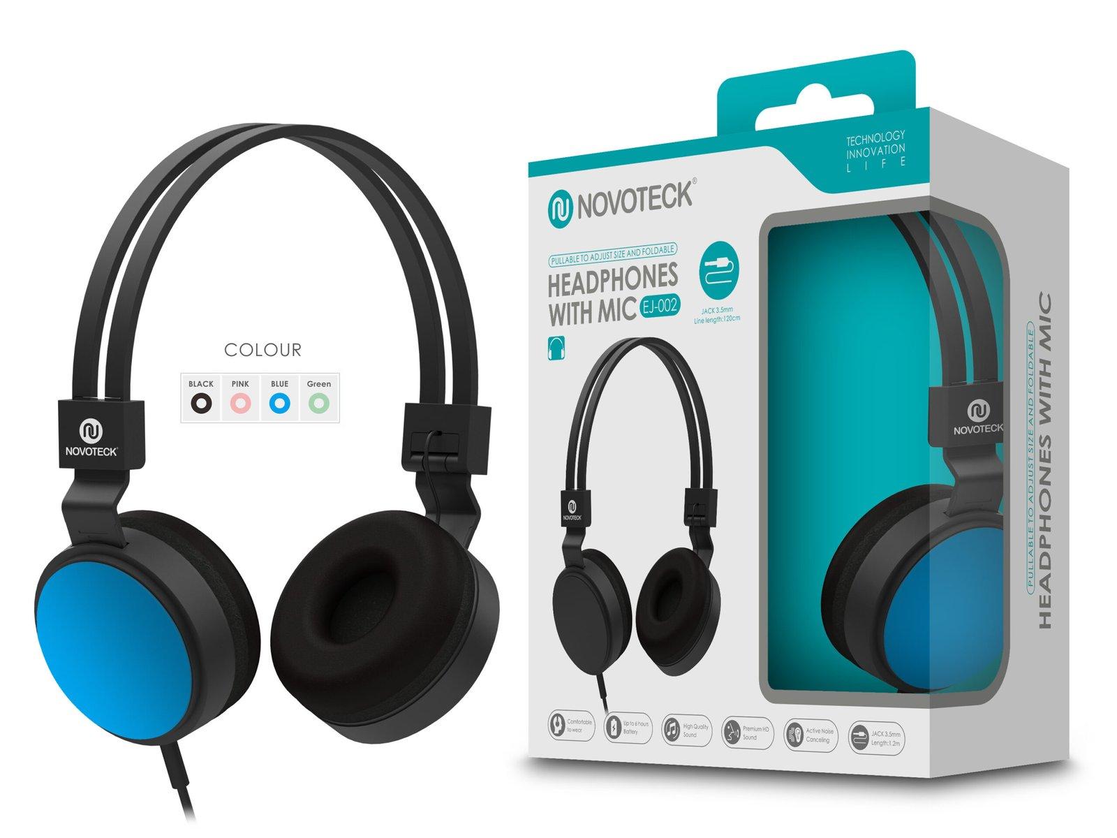 Auscultador com Micro - 120cm - Jack 3.50mm Azul EJ-002 EAN: