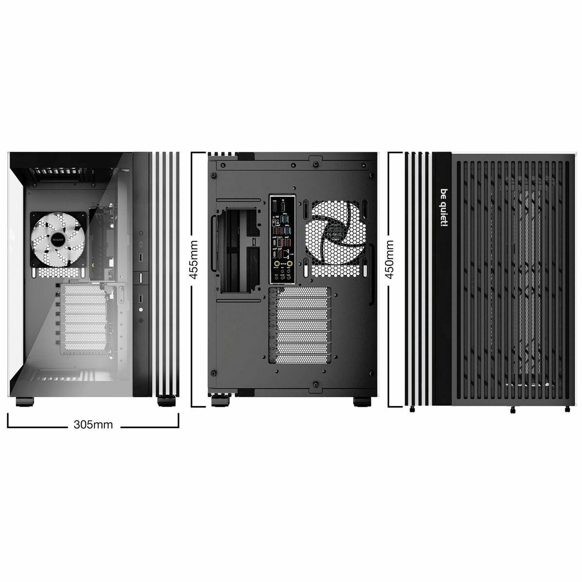 A caixa semitorre ATX Be Quiet! BGW67 é uma solução versátil para PC gaming e estações de trabalho, destacando-se pelo seu design sofisticado em preto e foco em funcionalidade premium. Compatível com motherboards ATX, Micro-ATX e Mini-ITX, esta midi-tower permite organização flexível do hardware, suportando até 10 ventoinhas e várias opções de refrigeração líquida graças ao suporte para radiadores de 120, 240 e 360 mm no topo e na base, além de radiadores de 120 e 240 mm nas laterais e traseira. O chassis possui estrutura robusta de aço com painéis laterais e frontais em vidro temperado, além de detalhes em ABS nos pés, proporcionando durabilidade e uma janela panorâmica que valoriza o interior. Oferece ampla capacidade de armazenamento, com até 4 baias de 2,5" e 2 de 3,5", ideal para configurações avançadas com SSD e HDD. Compatível com fontes de alimentação ATX PS/2 e placas gráficas de até 400 mm (com ou sem gaiola de disco rígido), é adequada para componentes topo de gama e placas gráficas grandes, contando ainda com 7 slots de expansão PCIe e possibilidade de montagem vertical de GPU em até 4 slots. Equipada com portas USB 3.2 Gen 2 Type-C e USB 3.2 Type-A, além de entrada e saída de áudio HD, garante conectividade rápida e acessível. Inclui iluminação LED ARGB sincronizável com a motherboard através de 77 LEDs, oferecendo opções avançadas de personalização visual para entusiastas de modding. Suas dimensões de 523 x 390 x 554 mm e peso de 14,6 kg proporcionam uma base robusta para configurações exigentes, cumprindo certificações CE e UKCA e diretivas ambientais como RoHS e WEEE. Em resumo, a Be Quiet! BGW67 oferece uma combinação equilibrada de espaço interno, refrigeração avançada, conectividade e design profissional, sendo uma escolha ideal para utilizadores que exigem alto desempenho e estética cuidada no seu equipamento.