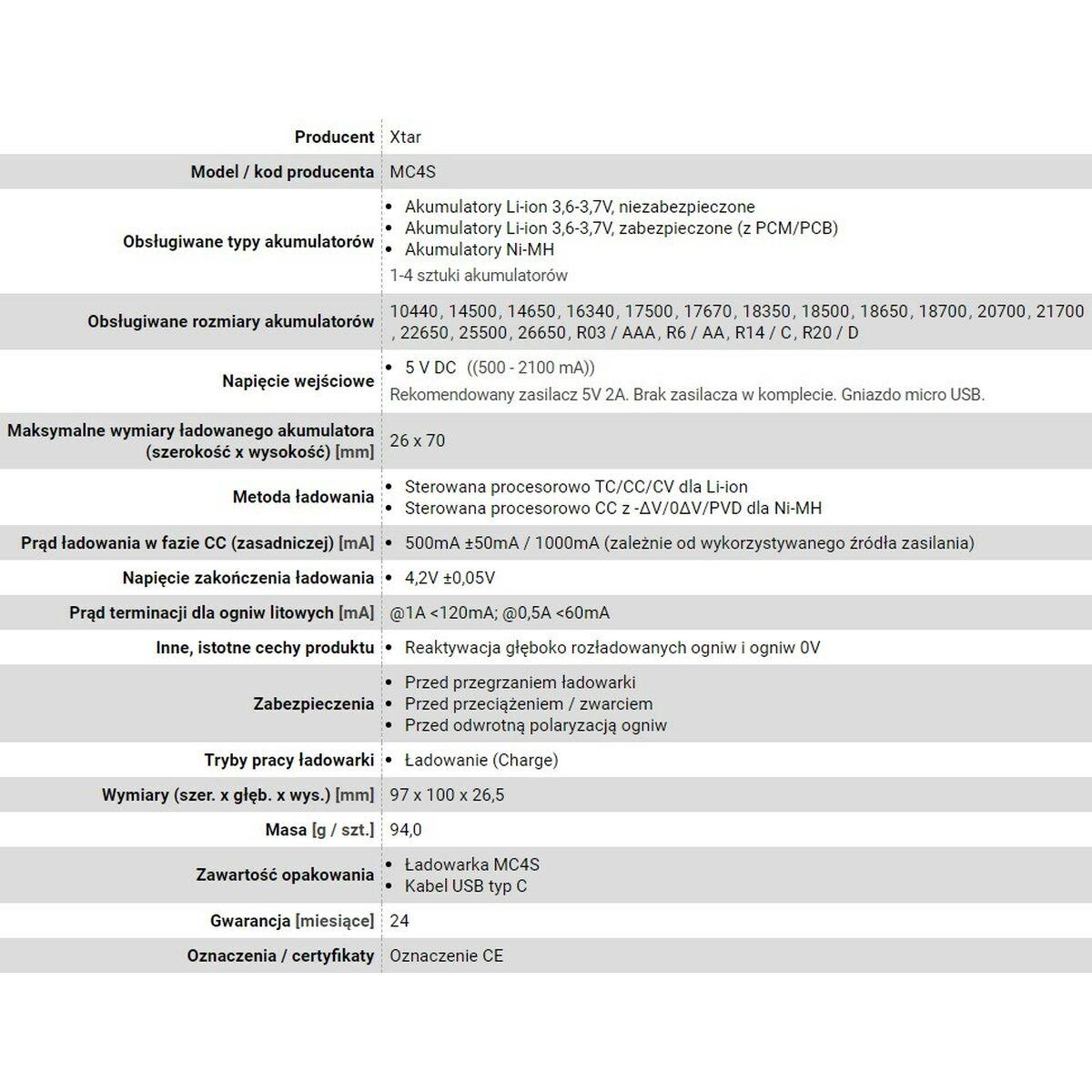 Carregador de pilhas Xtar MC4S