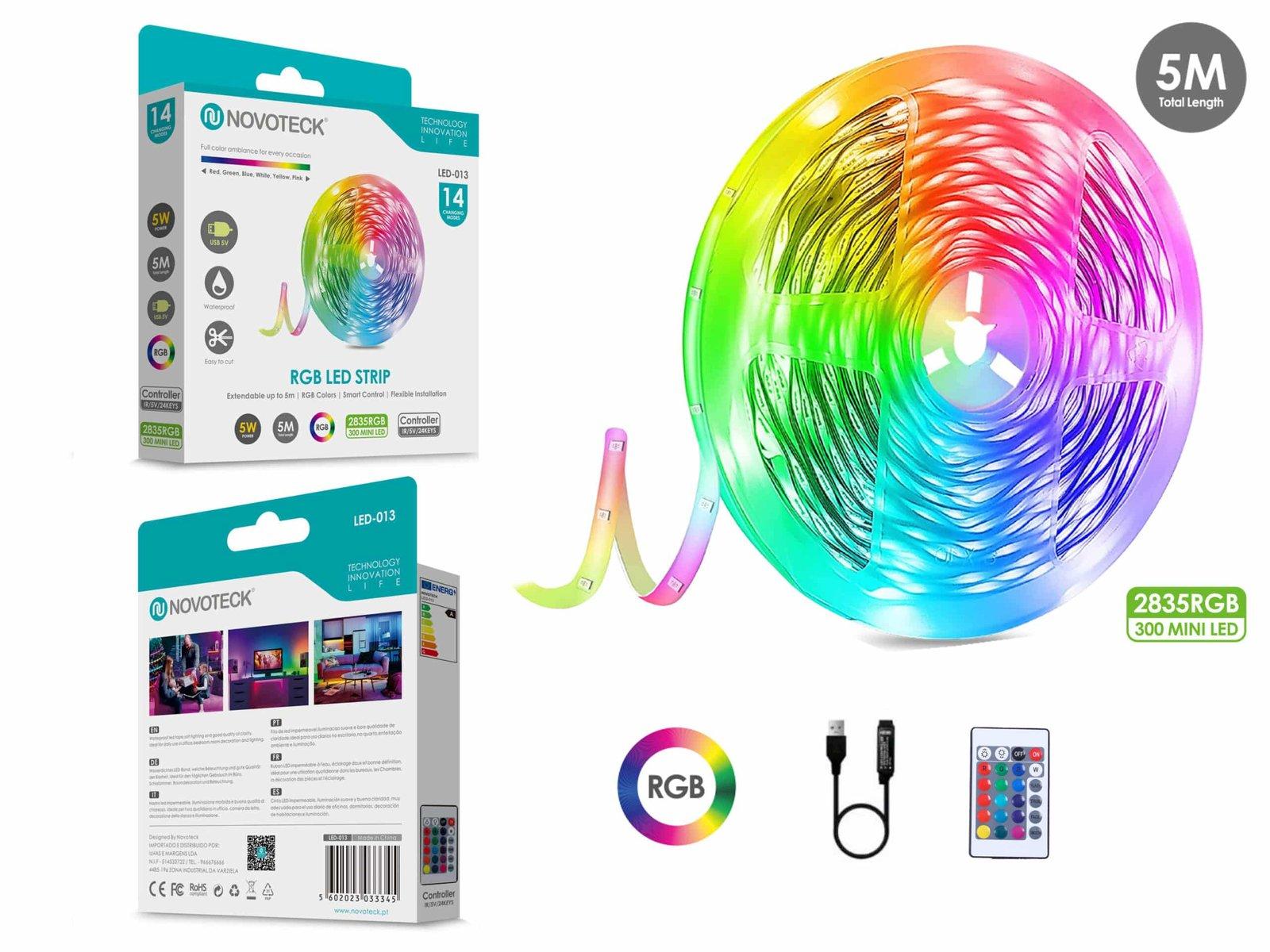 Descrição: A Fita LED RGB Novoteck LED-013 é a escolha perfeita para quem procura versatilidade e eficiência em iluminação decorativa. Com 5 metros de comprimento e equipada com 300 mini LEDs, essa fita oferece uma iluminação RGB colorida e vibrante para qualquer espaço. O controle remoto incluído permite mudanças de cor e padrão com facilidade, enquanto a classificação IP65 assegura resistência à água para uso interno ou externo. Especificações: Modelo: LED-013 Comprimento: 5 metros Quantidade de LEDs: 300 mini LEDs Potência: 5W Controle: Controle remoto Tipo de LED: 2835RGB Proteção: IP65, resistente a intempéries Funções extras: Variedade de cores e modos de iluminação Instalação: Fixação fácil com fita adesiva Voltagem: 5V (USB powered) Certificações: CE e RoHS Características: Ampla gama de cores vibrantes ajustáveis com controle remoto. Fácil de instalar em qualquer superfície lisa com a fita adesiva. Resistente à água, ideal para decoração de áreas externas ou sujeitas a umidade. Baixo consumo de energia, ideal para uso prolongado sem preocupações com a conta de luz. Alimentação via USB, proporcionando conveniência e portabilidade. Com a Fita LED RGB Novoteck LED-013, ilumine e decore espaços com facilidade, eficiência e estilo.