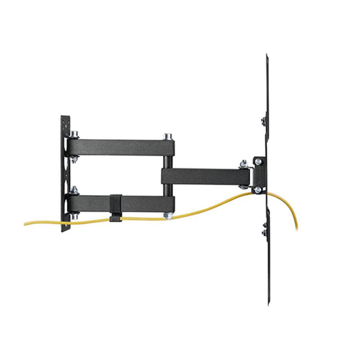 O suporte para TV Daewoo é uma solução robusta e versátil, projetada para instalar ecrãs entre 23" e 55", com capacidade máxima de peso de 30 kg, ideal para televisores de tamanho médio. Fabricado em metal, este suporte garante uma fixação segura e duradoura, perfeito para quem procura uma instalação estável que suporte o uso diário sem preocupações. O seu design inclui um perfil entre 60 mm e 382 mm, permitindo a distância correta em relação à parede, ajudando a otimizar o espaço e melhorar a estética do ambiente. Além disso, incorpora um braço giratório com inclinação ajustável, permitindo um movimento lateral de +90º a -90º e uma inclinação de +3º a -10º, facilitando a adaptação do ângulo de visão para reduzir reflexos e proporcionar uma experiência visual mais confortável de diferentes pontos da divisão. Adicionalmente, o suporte conta com um organizador de cabos integrado que ajuda a manter o espaço arrumado, evitando emaranhados que possam afetar a instalação ou a estética. Estas características tornam o suporte Daewoo uma opção prática e funcional para utilizadores que procuram versatilidade e robustez num suporte de parede para televisores de tamanho padrão. Em conjunto, a combinação de materiais resistentes, ajustes amplos e detalhes pensados para o conforto fazem deste suporte um acessório fiável e adaptado às necessidades atuais de montagem de televisores em casa.