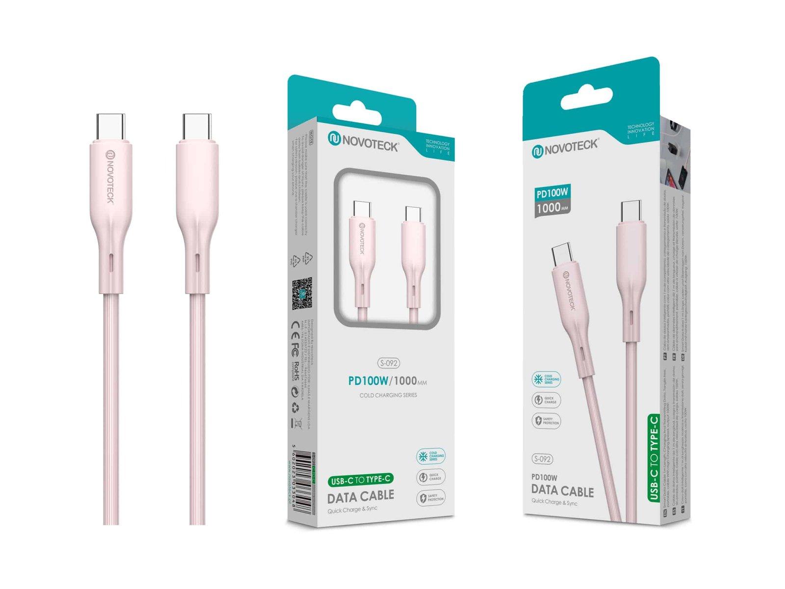 Cabo de Dados Fast Charge 5A PVC Macaron Design - Rosa , USB-C to Type-C , 1.0M