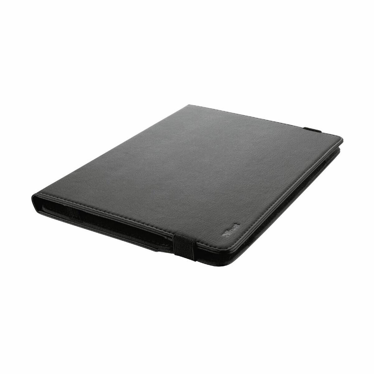 A capa universal para tablet Primo da Trust é um acessório projetado para oferecer proteção completa e funcionalidade prática a tablets de até 10 polegadas (25,4 cm), independentemente da marca. Esta capa tamanho folio destaca-se por ser fabricada com material reciclado de tereftalato de polietileno (PET), contribuindo para a sustentabilidade ambiental ao utilizar 6,5 garrafas PET na sua produção. Seu design tipo livro protege tanto a parte frontal quanto a traseira do dispositivo, garantindo que a tela e a carcaça fiquem protegidas contra riscos, impactos e atritos que possam ocorrer no uso diário ou durante o transporte em bolsas ou mochilas. Para assegurar que o tablet permaneça firme e seguro no lugar, inclui uma tira elástica de fechamento que facilita um ajuste confortável e seguro. Além disso, a capa Primo Folio aproveita sua estrutura para se transformar em um suporte estável e prático, permitindo ajustar o ângulo de visão ideal para assistir a conteúdos multimídia ou navegar na internet com conforto. Seu acabamento na cor preto confere um estilo sóbrio e versátil, adequado para qualquer ambiente. Embora seja uma capa universal, seu material PET reciclado oferece uma textura resistente e leve, com peso aproximado de 261 gramas, que não adiciona volume desnecessário ao dispositivo. Esta combinação de proteção, sustentabilidade e funcionalidade torna a capa Primo uma solução confiável para quem deseja cuidar do tablet enquanto adota um compromisso ambiental. Em resumo, a capa Primo da Trust é um acessório prático e ecológico, que oferece segurança e versatilidade para tablets de até 10 polegadas.