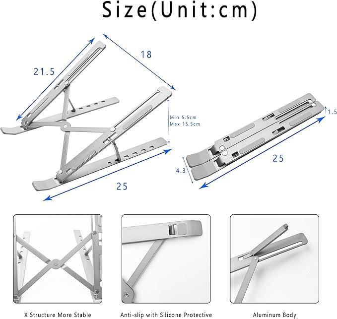 Design elegante e funcional: Fabricado em alumínio prateado, o suporte alia durabilidade com um acabamento sofisticado que se integra a qualquer ambiente de trabalho, seja escritório ou estúdio.
