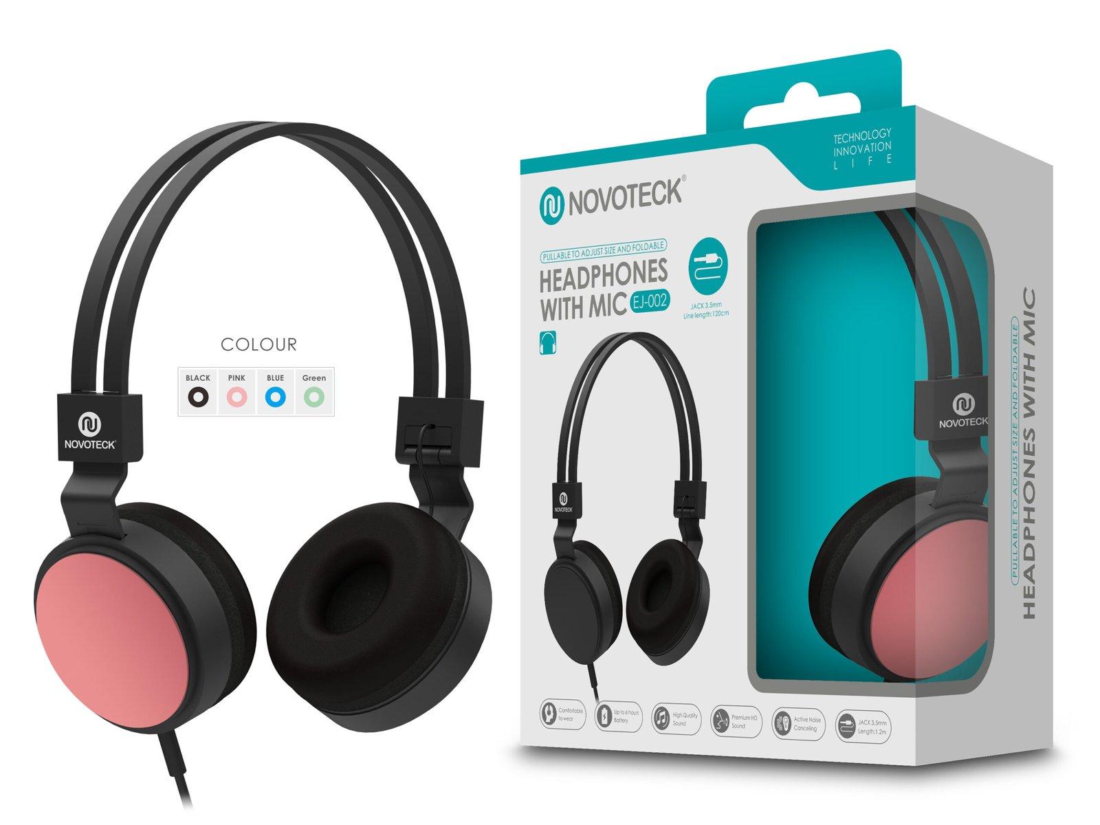 Auscultador com Micro - 120cm - Jack 3.50mm Cor da Rosa EJ-002