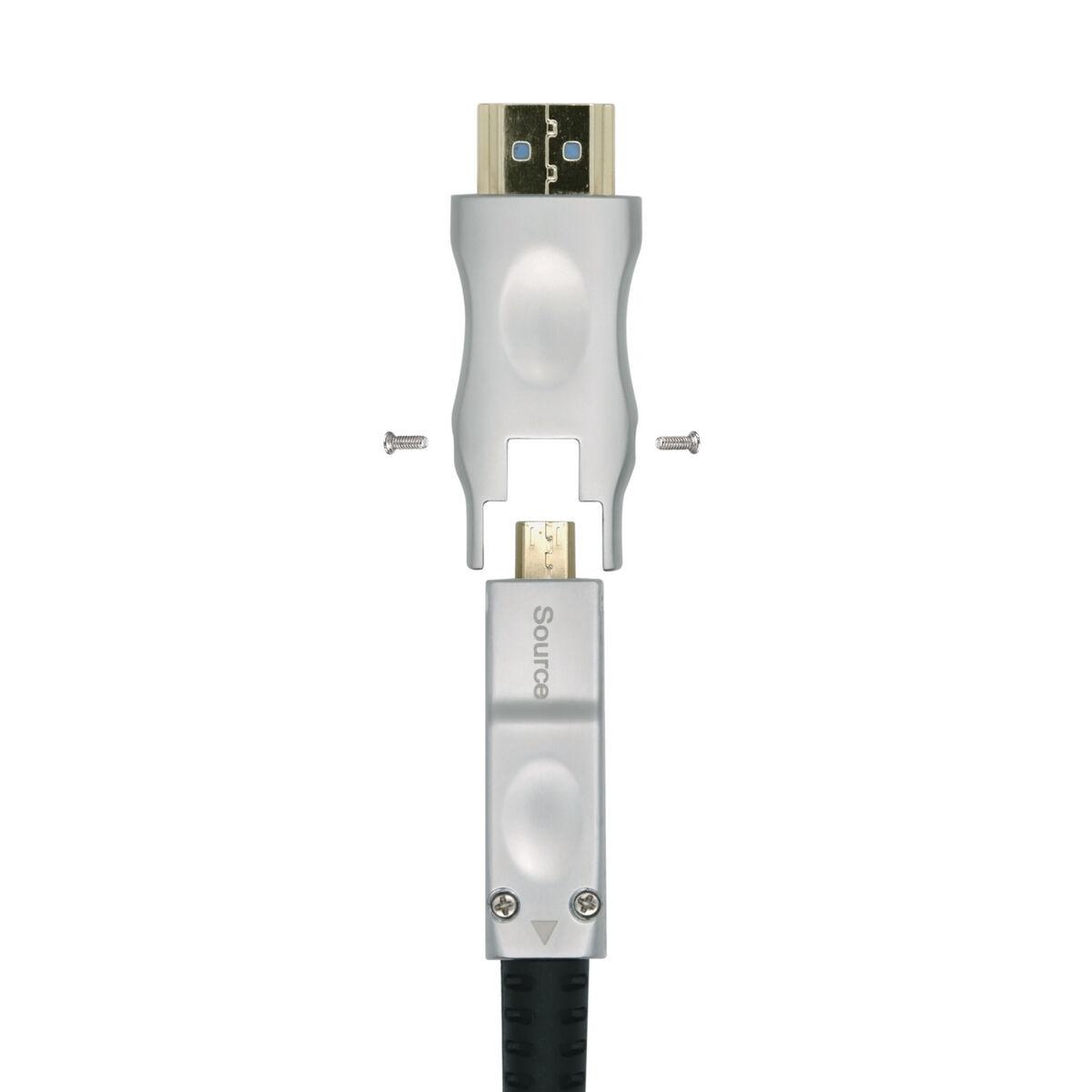 O cabo HDMI Aisens modelo A148-0513 é uma solução avançada para transmissão de áudio e vídeo de alta qualidade, especialmente projetado para instalações profissionais e domésticas que exigem longas distâncias sem perda de sinal. Este cabo possui conectores HDMI macho a macho, compatíveis com a versão HDMI 2.0, permitindo transmissão confiável de conteúdo em resolução 4K e suporte a formatos de vídeo de alta definição, incluindo vídeo 4K a 60 Hz. Seu comprimento de 40 metros torna-o ideal para conectar dispositivos distantes, como projetores, televisores ou sistemas audiovisuais, sem necessidade de repetidores externos graças à tecnologia AOC (Active Optical Cable), que utiliza fibra óptica para manter a integridade do sinal em longas distâncias. O design do cabo é plano, facilitando a instalação e organização, bem como a adaptação a espaços reduzidos ou inacessíveis. É fabricado com revestimento de PVC preto, que oferece resistência e durabilidade contra uso contínuo e agentes externos. A combinação de materiais e tecnologias garante uma conexão estável, minimizando interferências e perdas, ideal para profissionais que exigem qualidade e confiabilidade na transmissão digital. Em resumo, o cabo Aisens A148-0513 oferece uma solução completa e robusta para conexões HDMI de longa distância que requerem máxima qualidade de imagem e som.