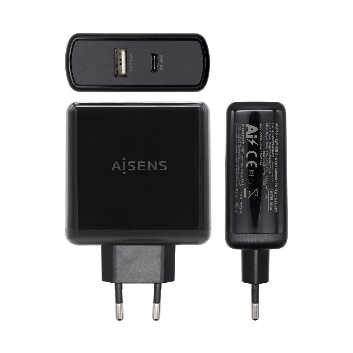 Carregador USB Parede Aisens PD 3.0 USB-C 57 W Preto ao melhor preço.