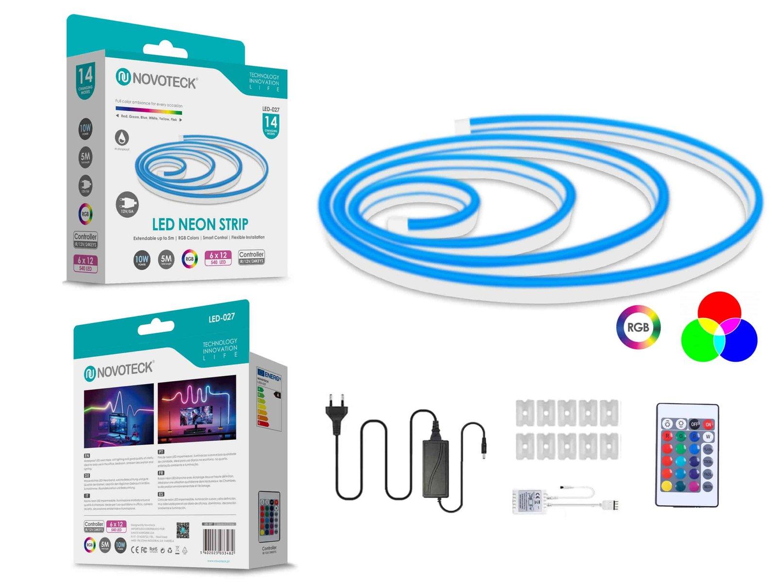 A Fita Neon LED RGB Novoteck LED-027 ilumina qualquer espaço com cores vibrantes e energia eficiente. Com 5 metros de comprimento e 480 LEDs, essa fita neon oferece uma iluminação contínua RGB, que você pode controlar com facilidade através de um controle remoto incluído, escolhendo entre várias cores e modos de iluminação. Com proteção IP65, ela é resistente à água, perfeita para uso tanto ao ar livre quanto em ambientes internos. Especificações: Modelo: LED-027 Comprimento: 5 metros Quantidade de LEDs: 480 Potência: 10W Tensão: 12V Proteção: IP65, resistente à água Modos: Controle remoto com várias opções de cor Instalação: Clipes de fixação inclusos Cor: RGB Certificações: CE e RoHS Características: Iluminação LED neon RGB para uma atmosfera dinâmica e colorida. Controle remoto para mudança de cor e ajuste de efeitos luminosos. Resistente à água e ao clima para instalação flexível em qualquer ambiente. Baixo consumo de energia para uma solução de iluminação sustentável. Fácil de instalar, não requer ferramentas complexas ou técnicos especializados. Ideal para eventos, festas ou simplesmente para adicionar um toque de cor a um espaço, a Fita Neon LED RGB Novoteck LED-027 é a escolha perfeita para uma decoração luminosa e animada.