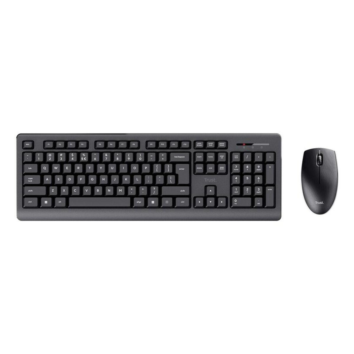Teclado e Rato sem Fios Trust Primo Preto Monocromática Inglês EEUU Qwerty US ao melhor preço.