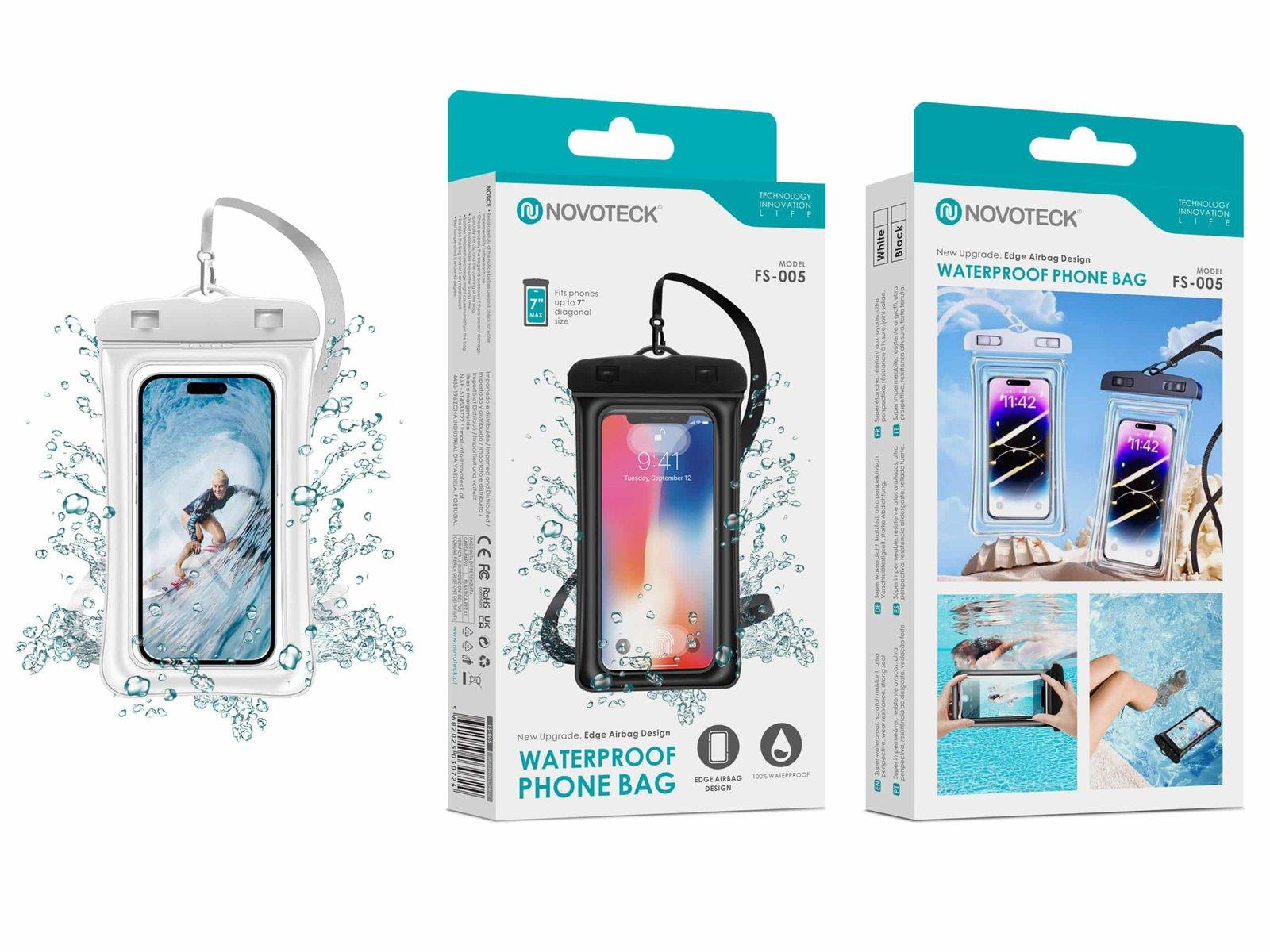 Bolsa Impermeável Branco para Telemóvel NOVOTECK FS-005 com Design Flutuante Airbag – Proteção Total até 7”